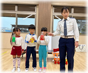 まつ組(5歳児) 12月に交通安全教室に参加しました👮♀️👮 信号機🚥の色クイズから始まり 道路のどこを歩いたらいいのか 横断歩道の渡り方🚸、信号の見方🚦 踏切や線路🛤の渡り方を教えてもらいました✨ お話を聞いた後の実 […]