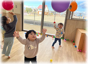 ぼたん組(1歳児)のお友達は節分にちなんで豆まきごっこをしました✨ 風船に鬼のイラストを貼ったりカラーポリ袋に新聞を詰めたりし鬼に見立て、「おにはそと」や「ふくはうち」と言いボールを笑顔で投げて楽しんでいたお友達😊🧡 ま […]