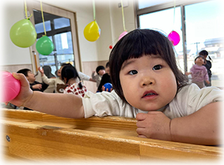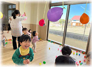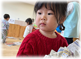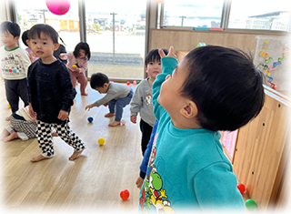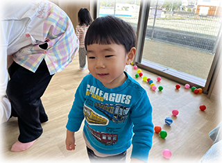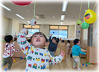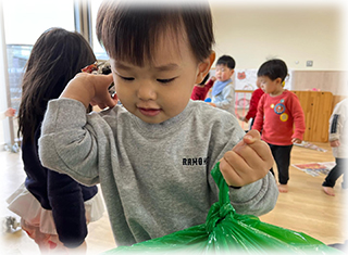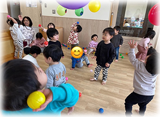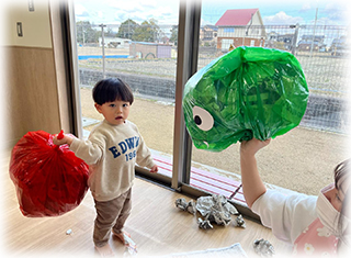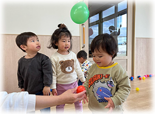 ぼたん組(1歳児)のお友達は節分にちなんで豆まきごっこをしました✨