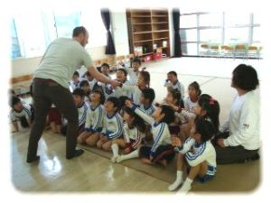 朝和保育園の きく(4歳)組のお友だちは、 体育教室に参加しました。 まずは準備運動!! “くまさん歩き”や“ドン・ピョン・ジャンプ”で体をほぐしたきく組さんは、 前転の練習をしました。みんな上手に“くるりん”できました […]