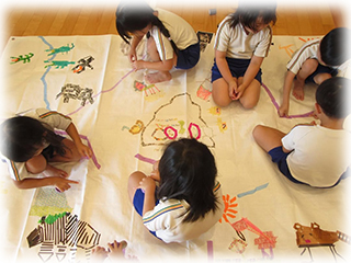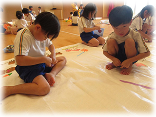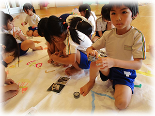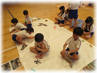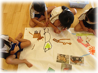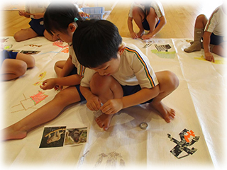 最初はテープをちぎるのに苦戦していたお友達でしたが、コツを掴み思いのままちぎり可愛い動物を作っていましたよ🐆🐒🦓🐊🦩