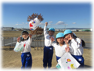 園庭で凧揚げをしたりサッカーをしたり、マラソンをしたり、、、たくさん遊んで楽しんでいます♬