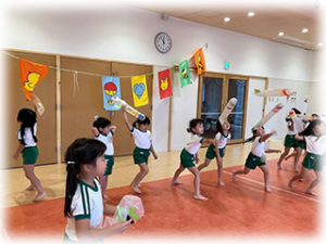 りんご組さんのさつまいも掘りごっこ お部屋にさつまいも畑ができると「なんだろう?」と不思議そうに覗きこむ子ども達 蔓を引っ張りさつまいもが「スポン」と抜けると大喜びの様子でした 抜けたさつまいもを畑にまた入れては抜いて・ […]