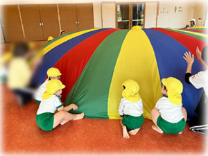 ばなな組さんのバルーン遊び おれんじ組さんに憧れてバルーン遊びをしました バルーンをバタバタと動かして大波や小波をつくり、大興奮の子ども達 お山を作って「ワンワン」でバルーンの上を進んでいくのも面白かったようです 最後は […]
