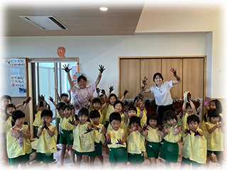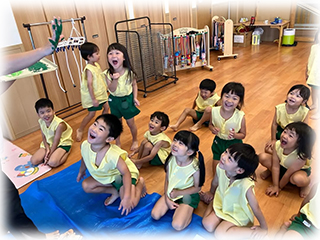 「今日は先生のTシャツや壁、床にも好きに色をつけていいよ!」と伝えると、「え?いいの?」「本当にするよ?」と目をキラキラさせる子ども達