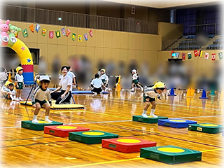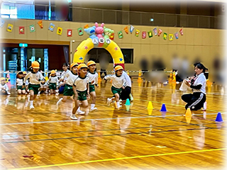 本番では少し緊張しながらも、練習の成果を発揮してかけっこやサーキット、バルーン、組み立て体操などに一生懸命取り組んでいました