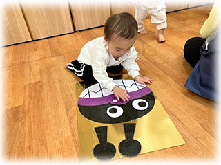 大好きなアンパンマンたちの福笑いに、子どもたちは興味津々!