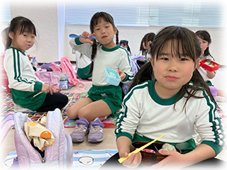 たくさん遊んだ後は、お待ちかねのお弁当とおやつの時間