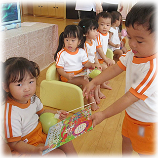 小さいクラスのおともだちは魔法のレンジのお話を聞いて楽しみました