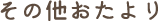 バスドライブのお知らせ(りす組) 宮森保育園 4月・5月行事(全クラス) 入園進級記念撮影のお知らせ(全クラス) 水あそびのお知らせ(全クラス) プール・水遊び期間中の健康面について(全クラス) じゃがいも掘りのお知らせ(ぞう・らいおん組) 水あそびに伴う準備物について(全クラス) 年齢別保育参観のお知らせ(全クラス)