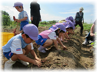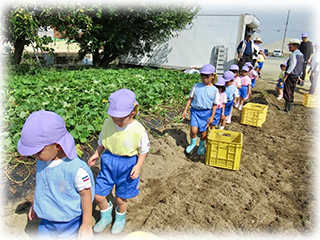 先生に手伝ってもらいながら、大きなさつまいもをたくさん掘っていました 園に帰って来てからも『おいもたくさんあったよ!』と、嬉しそうに教えてくれましたよ!