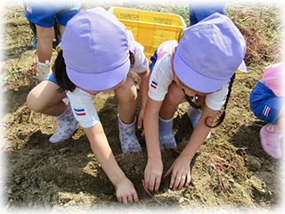 こすもす組さんとたんぽぽ組さんもさつまいも掘りに出かけました🍠