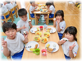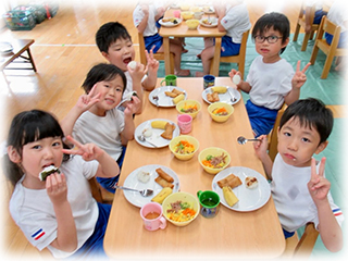出来立てのおにぎりを給食の時に一緒に食べて、とっても嬉しそうにしていたオリーブ組さんです!
