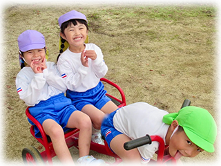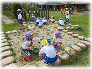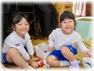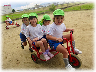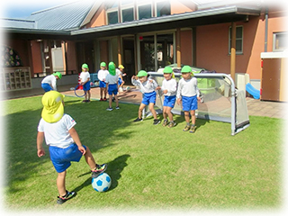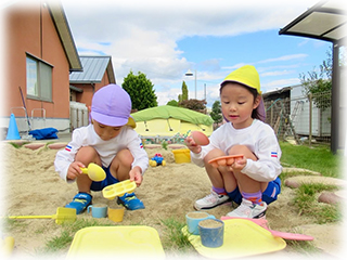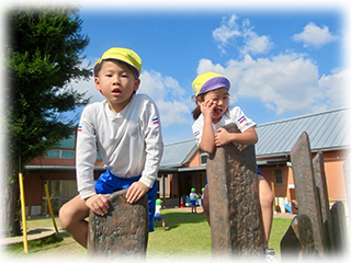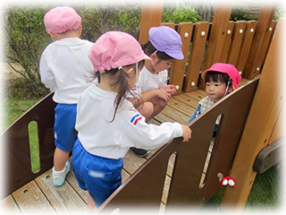 園庭では小さなクラスのお友達と積極的に遊ぶ姿も見られましたよ!