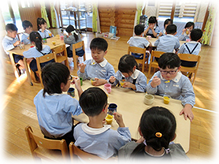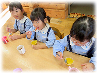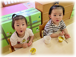 おやつは給食さん手作りのかぼちゃプリン🎃🍮