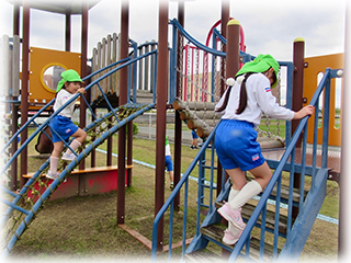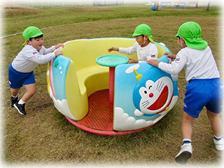 園庭を思いっきり走ったり、色々な固定遊具を使って楽しみました