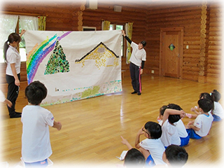 オリーブ組さんとこすもす組さんがマスキングテープを使って大きな作品を作りました