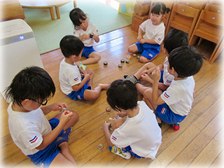 最初はちぎるのも貼っていくのも難しそうにしていましたが、どんどんスムーズにできるようになりみんなで楽しみながら完成することができました!