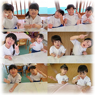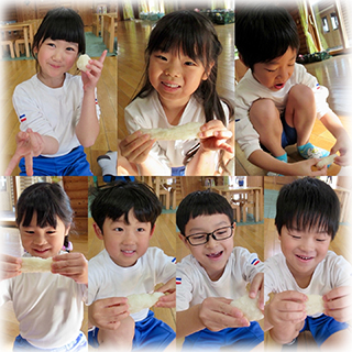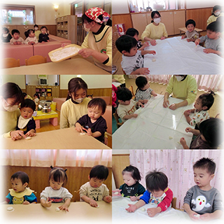 小さなお友達も、つきたてのお餅の感触を手や指を使って楽しみましたよ!