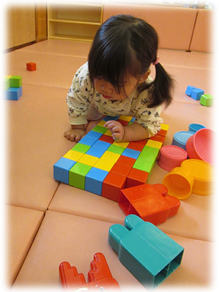 お部屋に帰ってからもブロック遊びを楽しんで、上手に組み立てられるとパチパチと拍手をしていましたよ!