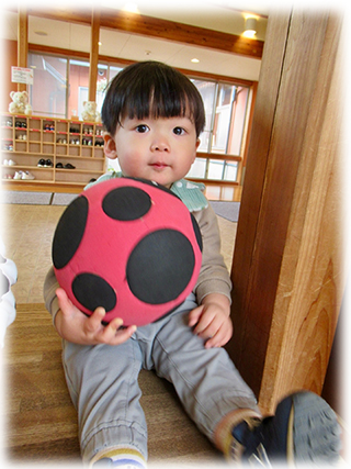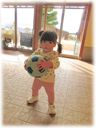 寒い日も園のエントラスでボール遊びを楽しみました