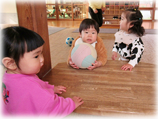 自分でボールを転がしたり、先生の転がしたボールを追いかけたり