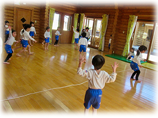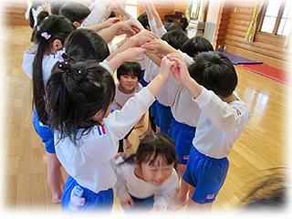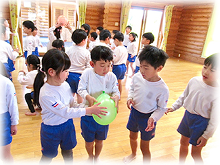大きなクラスのお友達とは、思いっきり体を動かしてのたてわり遊び!!