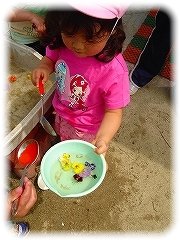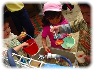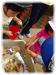 蛇口にお水を溜めお花を浮かべお水遊びをしました。