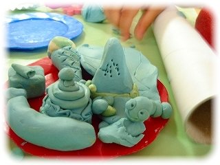 すくすくKIDS広場のお友だちは粘土遊びをしました。