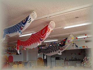 お部屋にこいのぼりを飾りました。