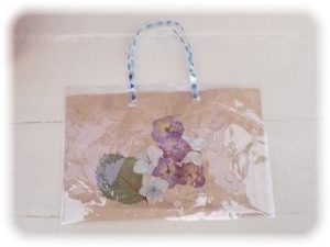 すくすくKIDS広場のお友だちは、 あじさいの押し花を貼ったカバンを作りました。 雨の日でも濡れないようにセロファンでカバーしています。 カタツムリの手形アートもして、 世界で一つしかないすてきなカバンが出来ましたよ!