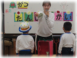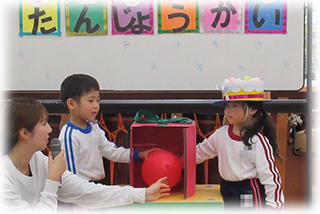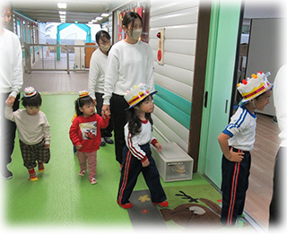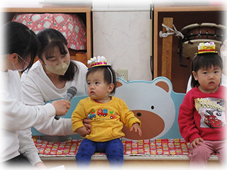 12月生まれのお友達はお遊戯室の外でスタンバイOKです。