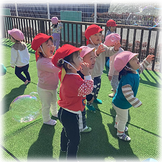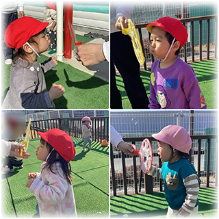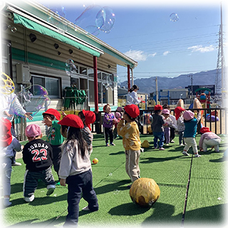 テラスでしゃぼん玉遊びをしました🫧