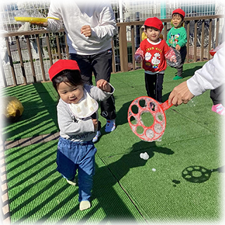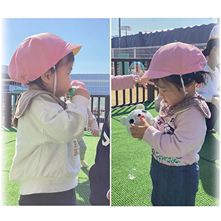 しゃぼん玉を追いかけたり、パチン!!と割ったりして、大喜び✨😆
